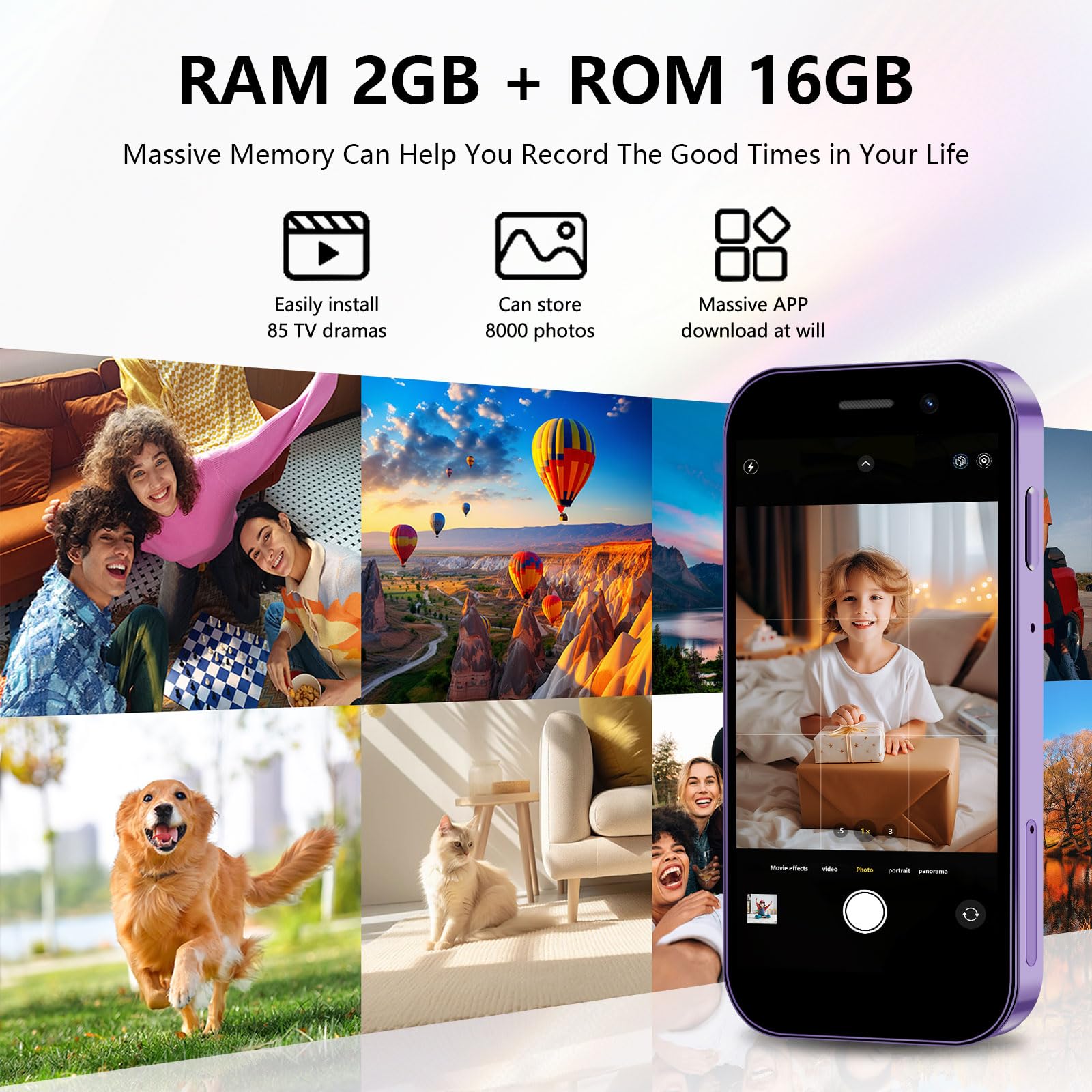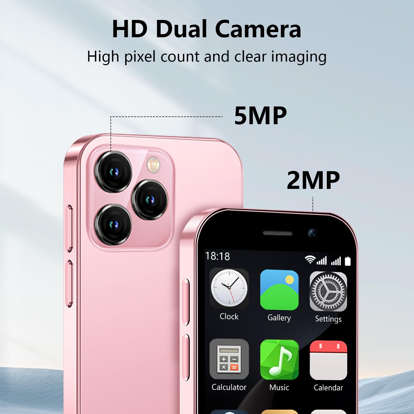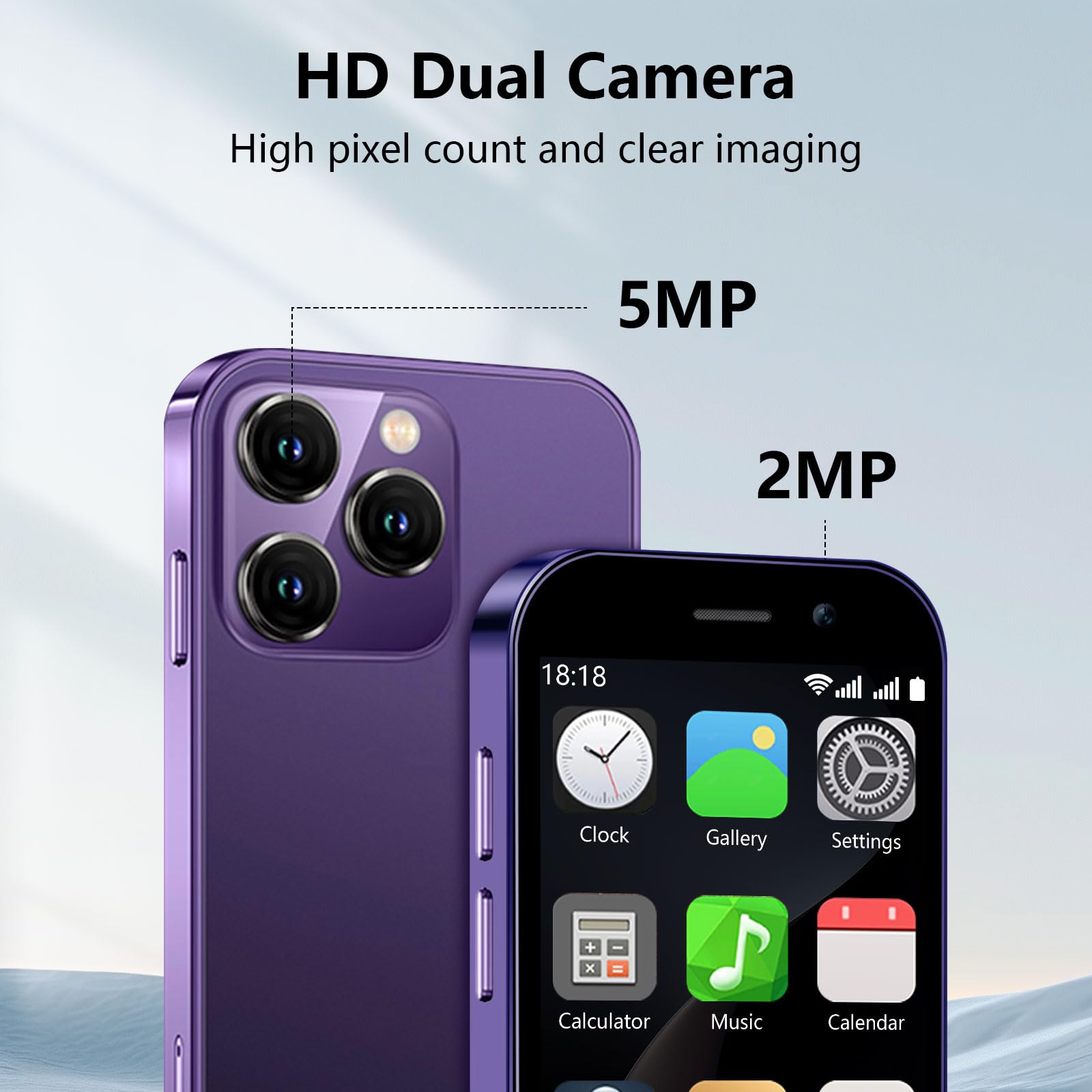 - 3. Dual-Camera mini phone: The Soyes small phone is equipped with a 3MP front camera and a 5MP rear camera, allowing you to capture every moment with ease. Whether it’s breathtaking landscapes, dynamic scenes, or personal selfies, the phone delivers exceptional image quality. Additionally, it features built-in facial recognition technology to safeguard your privacy at all times