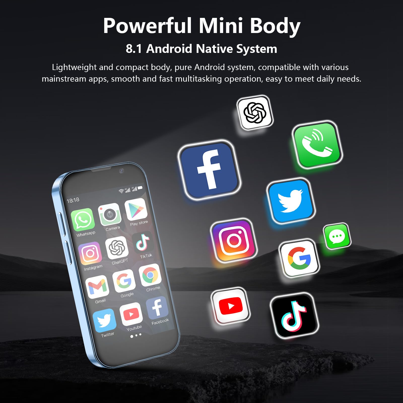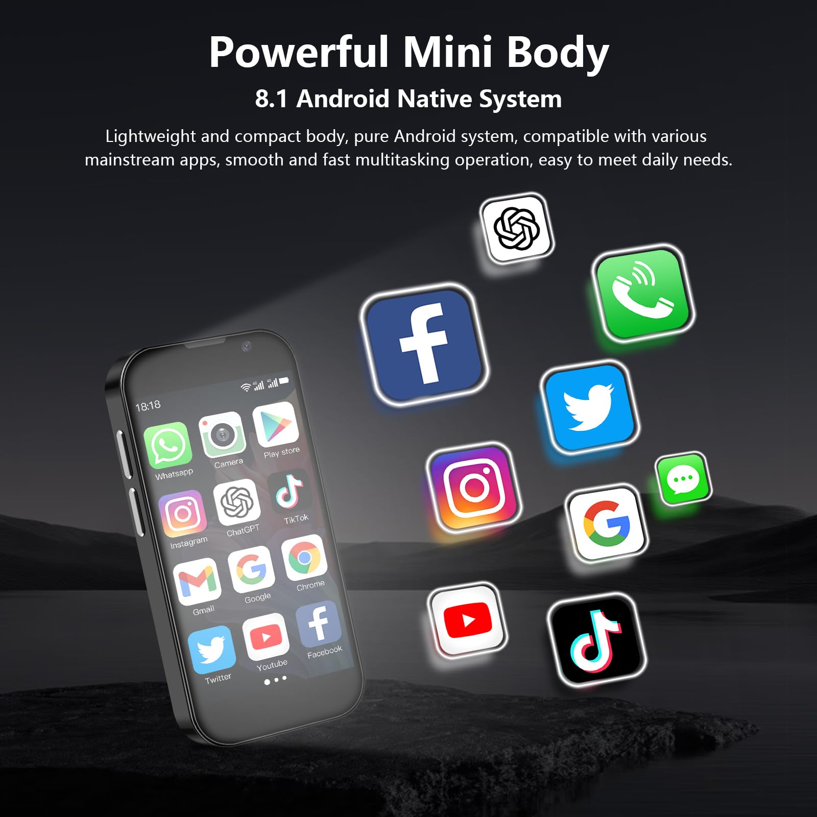 - 5. Powerful function cellphone: soyes mini phone is equipped with a quad-core processor, ensuring smooth and lag-free performance. Thanks to the Android 8.1 system, it supports most apps and is compatible with popular applications from the Google Play Store, including Facebook, YouTube, Instagram, WhatsApp, TikTok, Twitter, and more